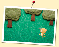 | お気に入りの8ミリカメラで野原の撮影をするこまちゃん。撮影に夢中なこまちゃんに、幽霊がいたずらしようと、こっそり忍び寄ってきます。 |
